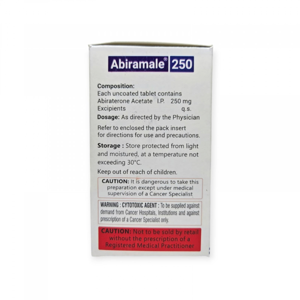 Abiramale 250mg Tablet contains the active constituent abiraterone acetate. It is used in adult men to treat prostate cancer, which has spread to other parts of the body. It is usually given with steroid medication to lower the chances of side effects. When Abiratas 250mg Tablet is prescribed for an early stage of this disorder, it is used with testosterone lowering treatment. This medicine is not for use in women or children. Effective contraception must be taken throughout the treatment. This medicine contains lactose and sodium, inform your physician if you have lactose intolerance or on a salt control diet.