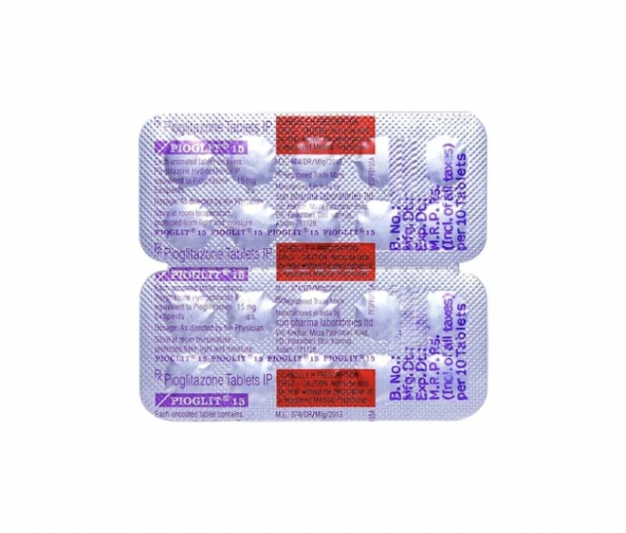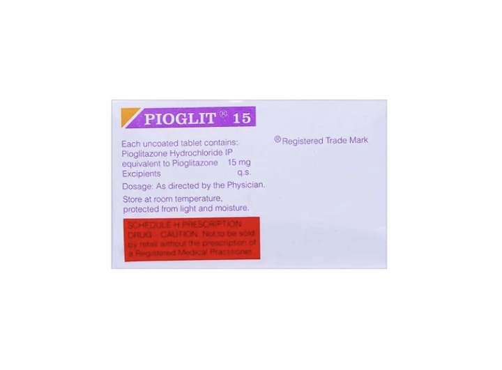 Pioglit 15 Tablet is used to treat type 2 (non-insulin-dependent) diabetes mellitus. It contains Pioglitazone, which helps control the sugar level in your blood when you have type 2 diabetes by helping your body make better use of the insulin it produces. It may cause common side effects such as upper respiratory tract infection, headache, sinusitis, myalgia (muscle pain), and pharyngitis. Before taking this medicine, you should tell your doctor if you are allergic to any of its components or if you are pregnant/breastfeeding, and about all the medications you are taking and pre-existing medical conditions.